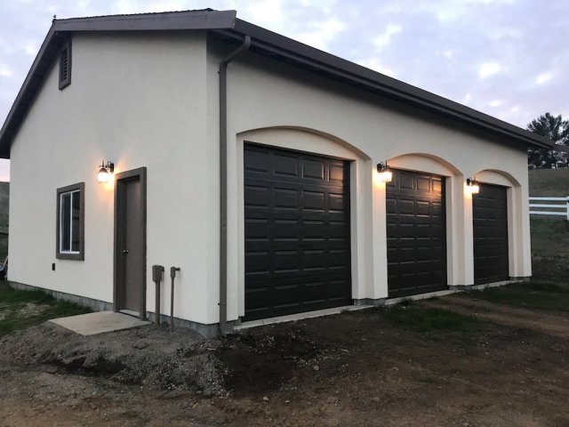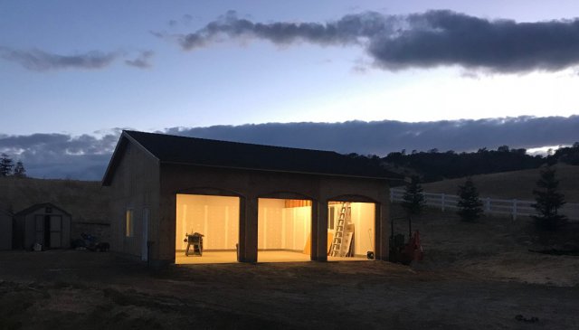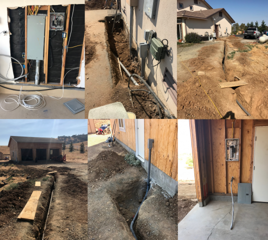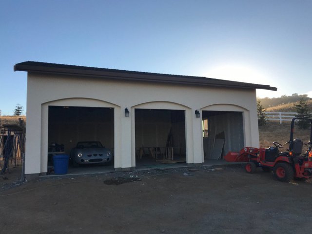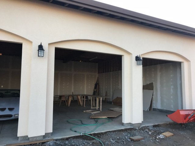 So, after digging a trench 24" deep and 120' long and laying 2" conduit containing my electrical service line..... ...I was able to do this... ...and finally, some of this. Doing a little finish work inside while waiting for my stucco guy to get back to me. Garage doors are also on the "ToDo" list.