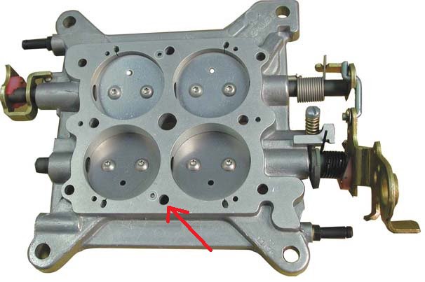 I appreciate the links, but they cover the fundamentals of tuning a properly functioning carburetor...and IMO you really can't start tuning a carburetor until it's acting properly. The primary jets are 64, the powervalve is a new 3.5", new needles and seat, float levels at the very bottom of the sight plug hole, 21* of initial timing, running hotter spark plugs (autolite 3926 with .045" gap), choke has been removed and STILL it idles and drives very rich, leaving a smokey haze everywhere. When I'm purposely leaning out one circuit after another in an attempt to find the problem circuit, and the engine still runs pig rich, this indicates there's a problem going on, something beyond normal tuning. Cold compression is 155-160 on all 8 cylinders, brand new msd 8mm wires / cap / rotor on msd distributor with msd 6a ignition, which is providing plenty of spark. The only thing that I'm having an issue with is the transition circuit, because I have the primary throttle plate open quite a bit since I can't get the secondary plate to adjust and balance the two out. I didn't measure it, but I'm sure my transition slot is exposed at least .050" or more. I'll be messing with that part tomorrow to see if I can get something rigged up for testing purposes. Although I didn't see anything with the smoke machine hooked up, I'll probably replace the intake gaskets anyways for good measure since my idle vacuum is really poor...along with adjusting the valves. But seriously as I'm looking at dropping another $100 on a baseplate when I know there's a very small chance that it's actually the root of the problem, it's pretty tempting to just buy another new carburetor and not have to deal with this bs so I can move forward to the tuning...plus I can get annular boosters instead. The fact though that I've already dropped at least $150-$200 in parts on this 670 and it still doesn't run worth a crap, I'm having a hard time throwing in the towel. I'll double check this tomorrow, but I'm trying to figure out how the base plate gasket would be responsible. If I remove the accelerator pump and put compressed air into the little passage hole that it squirts fuel through, I can feel air coming from each shooter nozzle. However when fuel is added to the equation, it will fill up the body that the shooter nozzle sits in, but instead of squirting out the shooter and squirts out the hole (the one pointed out in the first post) in the bottom of the carb...almost like the check valve under the shooter isn't doing its job. The valve looks fine, but I'm unable to access or even see what it seats up against, so I can't tell if there's a bad seal / debris / etc that's keeping it from seating properly. I was hoping someone had experience with this issue before.