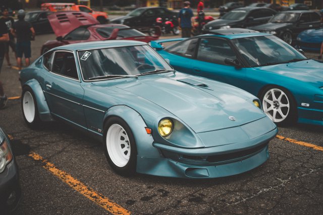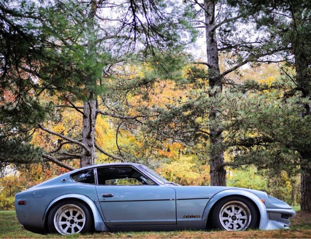 So, I was randomly looking back through my old posts and stumble back on my intro for HBZ. 5 years ago I got hooked on Datsuns. I stopped posting to focus on reading and learning more. Because of the overwhelming amount of information available about these cars I didn’t find it necessary to ask many questions. I stopped updating my introduction after i bought the 76 280z. The 280z has come along way since then! In the past 5 years it’s seen a lot of redoing. Iv’e changed wheels, flares, engines, ECUs, a few times. Although not the most efficient way to modify a car, it is allowing me to learn, improve and keeps me interested in the process. My only underlying goal with modifying it is to keep pushing toward the car having a “special” feeling to it. I can’t define a “special” feeling exactly but it’s a feeling i would like to have when i look at the car in the garage, sit in it, show it off, and while driving. A few years ago I swapped the l28 for a l28et. My first engine swap. It went pretty well and the experience was a huge confidence booster. It made the car feel way better on the highway and the exhaust note was awesome! The next year i decided to hop up the power a little and add Injectors, FP, larger turbo, IC, 3in exhaust and MegaSquirt. I had some help tuning and was able to learn a bunch about wiring and street tuning. The power gain was pretty substantial. Although I did not get a change to dyno it, my guess is it made around 300hp with a lot of torque. I really felt like this was the sweet spot for the car. Enough power to feel “fast” compared to a modern car, but not too crazy. A few months later I decided to start liking the Gnose. The Gnose really transformed the look of the car. I took the car to Gridlife Midwest and it won Best JNC classic! A proud moment for me as it was my first car show and i honestly didn’t build it with the intent of entering or winning any. Last winter the Z got some greatly needed upgraded wheels, and a RB25 fell into my lap. I wanted to keep the white blue contrast going and had some Wantanabe RS8s custom built for the Z. The wheel size and width are totally for athletic purposes and I’m fine with that. I had been wanting to do a RB swap since before i did the l28et swap, they where just too pricey at the time. That winter I stumble across a cheap local RB25 for sale locally, and decided to take the plunge. I refreshed all of the accessories on the RB and installed an upgraded turbo, turbo manifold, ECU Masters EMU Black, custom wiring harness, 1000cc injectors, even larger FP, fuel rail, and open dump external waist gate. I also took the opportunity to clean up and paint the engine bay. People would always ask me to see the turbo swap and with how messy the bay was before i was kinda embarrassed to. I learned so much during the first swap the RB swap came out so much cleaner and came together much more easily than i would have thought. This time I did all of the initial tuning myself and took it to the dyno to get it fine tuned under boost. Made 400hp on 93. The RB25 make the car feel much more modern and refined when not in boost. On boost its pretty intense! It kinda feels like having a loaded gun on you. I was missing with the idea of tuning it on e85 but i think I am good with the power it has for now. I’m also still using the u-joints in the rear, so I am planning to upgrade the whole rear end soon. Also happened to win a showcase award at Clean Culture MI! In all, I've been humbled by how much other people enjoy the car. I've met interesting people, made good friends from people just starting conversations about it. HBZ has been a constant resource for me throughout this project. Thank you all for the quality info and keeping the forum alive!