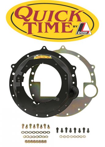 ^^^^THIS is very helpful! I had thought about keeping the VG Trans. This may make the swap much easier! Im not sure about their accessory belt drive yet i would really like to see some pictures. I may end up buy their adapter kit and getting a t56 just to weigh my options. I also had a thought... I know the trans tunnel is always an issue with a GM transmission. Especially right at the firewall. So i have been looking the the differences in clearance between the F-body and Quicktime Bellhousings. Here is a couple pics tho show what i am talking about. You can easily see how the quicktime doesnt have the slope like the F-body does. Which may, or may not help with some clearance.