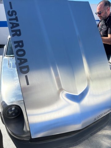 Aluminum Body Panels of 240Z manufactured in Japan These 240Z Aluminum Body Panels are originally manufactured by Yahagi Industry Company in Japan. They will be marketed by Star Road Specialist in Tokyo, Japan. The body were installed on a private owner's car for the Sema Show 2025. I hope they have a video of the installation process so we can see how to done. That way, potential customer can determine whether their body shop can duplicate the installation. Working with Aluminum is not an easy task and requires some specialized expertise and tools. This vehicle was on display at the Toyo Tires Booth at Sema. Pic of Hood Bottom of the Hood the Hood Skin was riveted to the Hood Ribs. the Engine was a Turbocharged Nissan Motor. View of the Front End Rear Hatch Lid Right Side Door Rear End Panel Roof Panel Left Rear Quarter Panel Right rear Quarter Panel and Fuel Tank Door Left Door Left Rear Quarter Panel Left Front Fender Front Cowl Section Front Grill Section Headlight Bucket Information Sheet Weigh Saving Information Card These Aluminum Body Panels are very well made and looks great. It will provide a another option for restoring 240Z and save many Zs from being scrapped. i talked to the guys who actually manufactured the aluminum panels with the little Japanese that I know. They told me that right now, they plan to run only a Production Run of 100 body panels. Star Road is handling the sales side. But they would not give a price yet. I think they are waiting till the Tokyo Auto Salon Show occurring in January 2026 in Tokyo. -