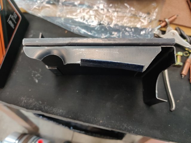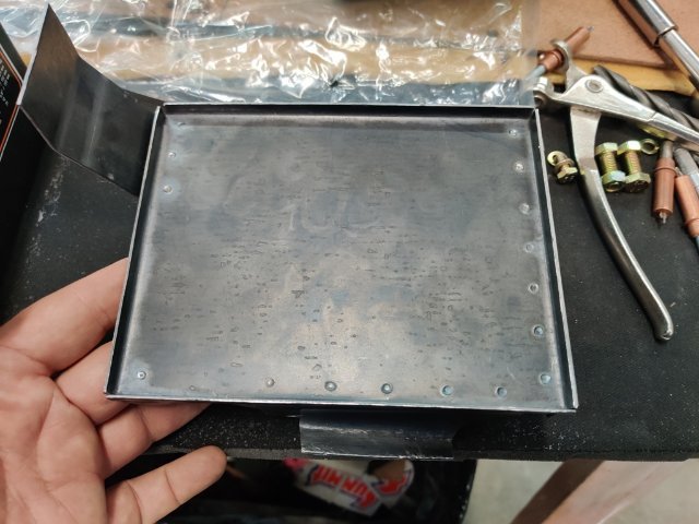 After several weeks of various distractions, I was able to commit a bunch of hours to working on the "track car" this weekend. I recently purchased some nice tools to make fabrication projects easier. Here are some pics of tools: And with those on hand, I was able to make a nice battery tray for the new Braille battery. The spot welder I bought several years ago was awesome to use as well. I, am very happy with how this part came out, even if it did take me about 9 hours to make it (!) I still have to design a battery clamp down mechanism to hold the battery to this new tray, so I will work on that soon. With the battery tray temporarily in place, I again mounted the dry sump tank, and started figuring out all the fittings I will need for the lines for the dry sump system. I plan to order those soon and then mock up some hoses.