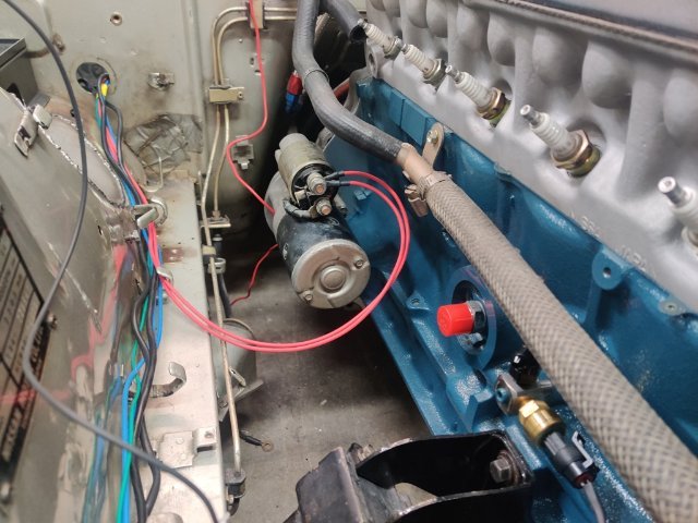 While working on modifying the engine compartment wiring harness, I bolted up the factory Nissan gear reduction starter that I have been using. While it cleared the dry sump oil tank, I was not happy with the location of the solenoid. It was quite close to the oil tank. I didn't recall it being that far away from the block. I looked for other versions of the gear reduction online, specifically hoping to find one with the solenoid located closer to the block. However, I was not able to find a factory one that was different. I was able to find this one however: https://www.classiccarperformance.com/products/datsun-240z-260z-280z-high-torque-starter?srsltid=AfmBOopbvBP16wSs5tvniJbqMb9CK2Kds63KS8RAjuCAWd7ZupU4Lbwm Because it features the ability to change the "clocking", I went ahead with buying one. After receiving it, I compared it to the one I already had: As you can see, the solenoid is in a very different location. In fact, out of the box, the solenoid bumped up against the block and the starter would not bolt up as it was delivered. I moved the mounting plate one hole location counter clockwise (referencing the picture above). In this position, the solenoid no longer interfered with the block. However, one of the mounting bolts had to be placed into position before re-attaching the mounting plate, as there was not clearance to put the bolt in after clocking to this position. That made installing the starter to the transmission MUCH more difficult. It was possible, however. Another issue that isn't great is that the positive terminal, where you bolt the positive battery cable, as well as some of the other items that have to be powered by this terminal (radiator fans), is on the underside of the solenoid, quite close to the engine block. It is just another inconvenience. So, I was able to achieve the overall objective - improving the clearance between the starter and the oil tank, but it was with some sacrifice of convenience in mounting and bolting up main power cables. In other news, I received the real oil lines that I had made. These are XRP Pro Plus hoses. I spent a lot of time and effort figuring out the routing, making "mock up" lines from pool hose, and waiting for them to be crimped and sent back to me. Yesterday and today, I worked on routing the two that cross just at the front of the engine. I have fabricated a plate out of 6061 T6 that mounts with some spacer at the front of the cylinder head. I have drilled holes and bolted rubber insulated P clamps to locate the lines precisely so that they do not rub against each other or anything else. The tank return line runs quite close to the water pump pulley. But, it is well located to eliminate interference. I also have little clearance between the studs in the water pump (holding the fan pulley one) and the Spal electric fans. Today, I removed the studs, and switched to the use of bolts instead to gain a bit more clearance there. It was super cold here on Saturday, and I wasn't feeling 100%, so not much time in the garage this weekend. In coming weeks, I plan to do some floor pan repairs. I will likely be pulling out the engine and transmission and differential... and mounting the car body on a rotisserie to facilitate that effort. I have a couple of patch panels (due to prior rust) that I'd like to redo, and I need to install mounts or anti-submarine straps (for the 6 point safety harnesses). Plus, I need to finish welding in the custom brackets I made to mount the Tillet carbon fiber seats.