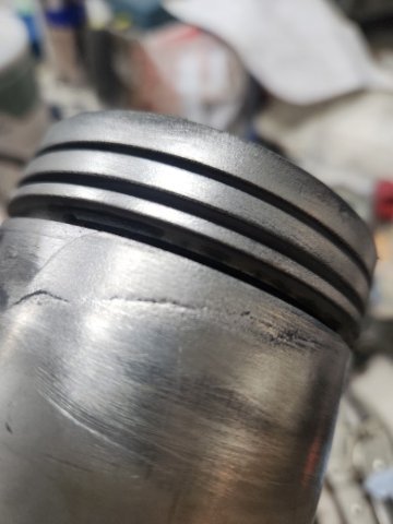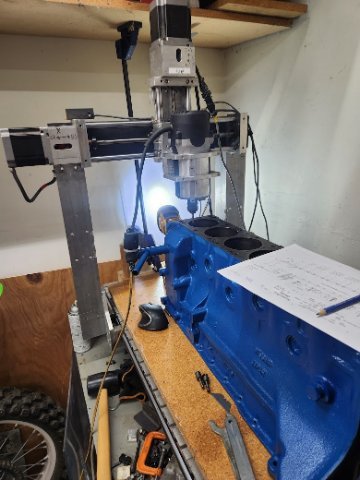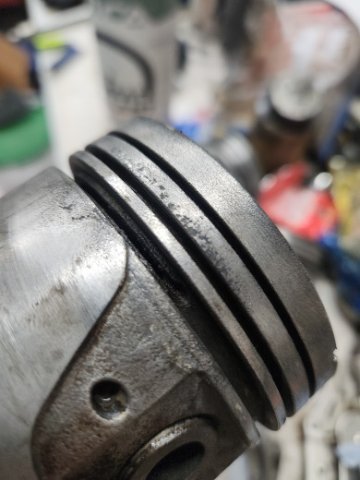 Slowly been chipping away at building this engine. Got all the oil pickup tube mods done. Then used my cnc router to plot out where to drill my block for the cooling mods for JeffP's head gasket. I'm cheap and not using his gasket but modifying a felpro to have all the cooling passages. My router isnt ridged enough to actually machine the holes but it allowed me to do a spot drill for the hole centers. Then came back and use the correct sized drill bits in a hand drill. Then used a die grinder to connect the 2 holes on the oblong holes. Worked well. Some time after that i was working on m wife"s car but wanted to keep going on the engine so I took my heavily carboned up pistons and soaked them in Superclean. DO NOT do this!!!! It eroded my pistons and made them unusable. Talk about a gut punch. The pistons where within spec and perfectly usable. Well I didnt know what I wanted for Christmas But I did after this. My mom and Aunt said they would go in together and get some new ITM's for it and where nice enough to let me have them now. Pressed the old ones off. New ones on. Gapped the rings. And install.