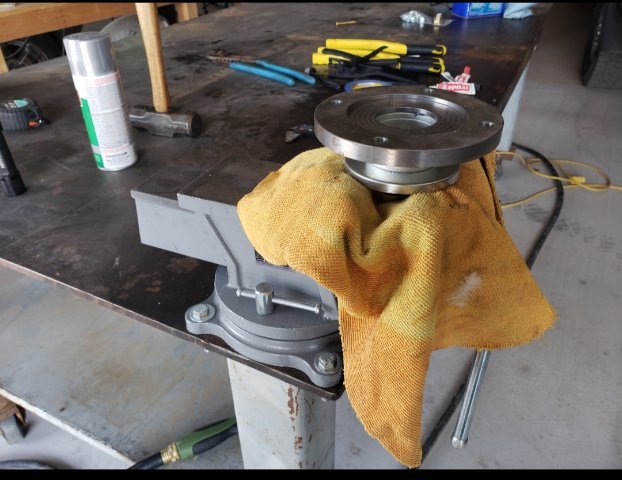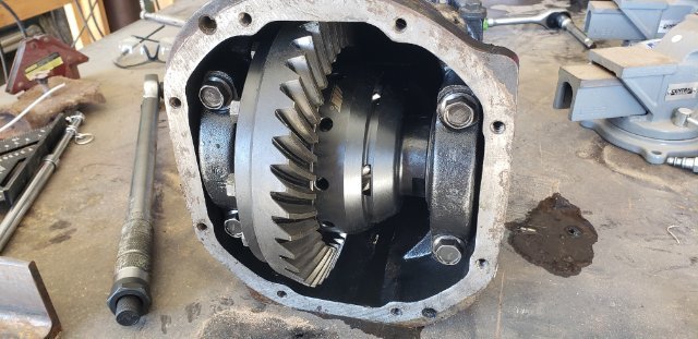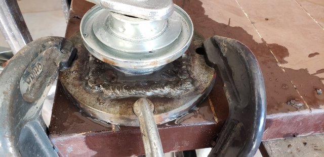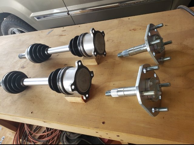 I bought, and installed my new Mfactory Helical lsd ... I also installed techno toys 4340 billet stub axils that i did have to make 4mm spacers where the bearing is pressed on against the flat plate side with wheel studs other wise the plate would tighten up against the bearing housing locked to where it would not spin freely , and I also used OEM 300zxt axils that were in fantastic shape like new internals i installed new grease ,and boots flipped the bearing cage on passanger side axil ,and painted them .... the adapters were from silvermine motorsports i came up with a method to center the companion flanges to adapters by using jb weld and using a digital measuring caliper to center before jb weld hardened holding the companion flange in a vice and putting the 300zxt adapter on top while jb weld cured to hold parts in position for welding ... i used a 2 1/2 thick machined flat large metal plate with 5 clamps to hold the companion flang ,and 300zxt adapter round plate tight with force on the 2 1/2 inch metal plate for welding process to keep every thing from warping, and it worked perfectly . I left it clamped until everything cooled down after welding ... The adapter ,and companion flange after this clamped welding run /spin true flat with no up and down or side play in movement while spinning zero vibration while running on the car .. every thing is worked out pretty good so far every time my TCI street fighter 700r4 hits 2nd gear both rear tires bark posi , and around the corners it feels great tracks fantastic ... some pictures