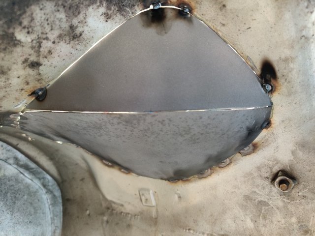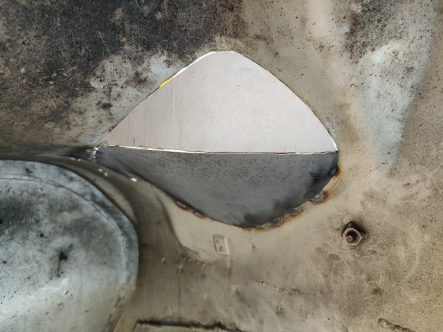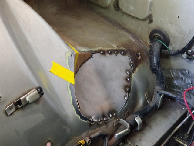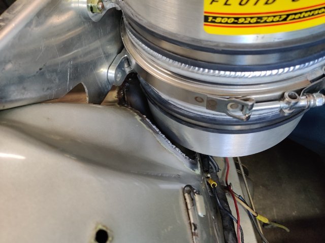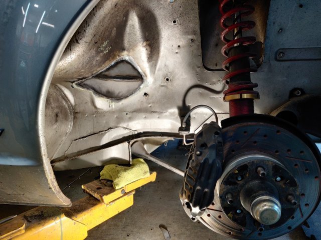 This past weekend I made some more progress. I worked on cutting the right inner wheel house, made two new panels, and welded them into place. I used thin cardboard to make templates for the two replacement panels. After tack welding the lower panel in place, I made the second, upper panel. I checked tire clearance, and then finished welding them in. I think my welding regulator is inaccurate. I was getting some contaminated welds until I bumped the gauge up to 27 psi (I have always used 20). Once I bumped the pressure up, the welds got a lot better. Metal fabrication like this always takes me a long time to do. I am glad this part of the work behind me now. I ordered a remote filter assembly and mount, and a breather tank this week end. They should be here in a few days. Then I should be able to finish up my order for XRP fittings for the entire oil system. I plan to buy the fittings and install them all so I can check/set orientation. Then I will buy some corrugated pool hose for the purposes of mocking up the lines. I will cut it to fit for each hose assembly, and then mark the hose and fittings to "clock" them in the correct orientation. Finally, I will box all of them up and ship them off to have an XRP distributor install Pro Plus Xtreme hoses with crimp on fittings.