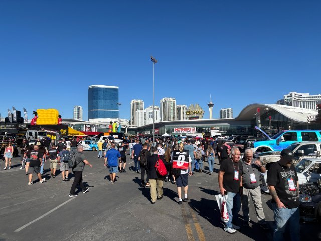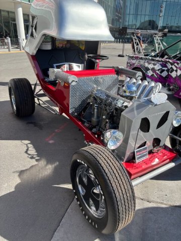 Sema and Apex Show 2025 -Las Vegas Nov.4 to Nov7 I have been to the Sema and Apex Show in Las Vegas for over 35 years missing only two shows. These Shows have been crowded and always better than the previous year. That is until now, this year the show were not better than previous ones. Not as many vendors and corresponding not as many attendees. Prices at this noticable higher than past. Everyone expects convention prices to higher than outside of convention area. But, this year, prices for food, hotel rooms, etc were extremely higher. For example , one regular16 oz of Water was $9 a bottle. Mac Donald's Cheese Burger Meal with Fries and Drive ran about $35!! Prices for everything was higher within 2 Blocks of the Strip. The lack of human card dealers who were replaced with automated machines was everywhere. Also, missing was the people. I would there was about 20% less people at the convention and maybe 25% less people walking on the Strip. This is happening during one of the biggest conventions of the year!! Back to the Show- Riding the Las Vegas Mono Rail that runs parallel from MGM Grand to the Las Vegas Convention Center. Regular price was $6 a ride but it was lowered to $5.50 for the convention goers. Cars, Trucks, Food Truck, Vendor Tests, etc outside the Convention Hall. Blown Cars preparing for the Burnout Box Area Off Road Motorcycle Jump Area Videos of their Jumps- IMG_8092.MOV Sorry, my videos of the motorcycle jumping was able to post. I will try to correct this if i can. A crazy looking Roaster Beautiful Chopped Chevy Truck Convertible a Usual Large Amount of Load Speakers in a truck bed. Pic of the Crowd of People Outside the Central Hall Ford GT Racer Interior pic of a Green 240Z Racer - Today