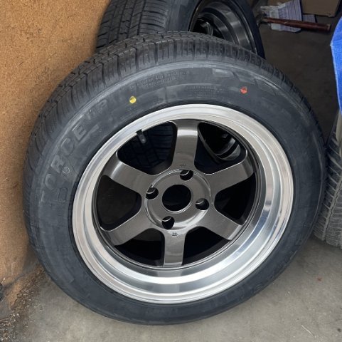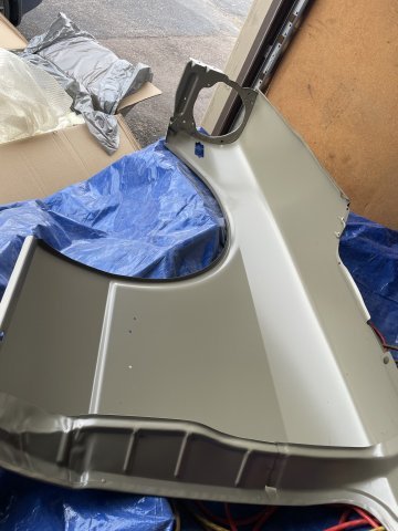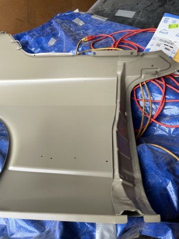 11-25-2025. My new fender and hood came in from Resurrected Classics today. I quickly hung the fenders on and took some pics to show how well they fit. Very impressive. High quality parts. The box does say "Made in China", but they are VERY nice pieces. I also went ahead and got the front tires mounted on to the front wheels. The wheels are 16X8 with 0 offset, the tires are 205/55R16.