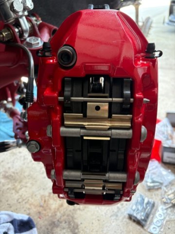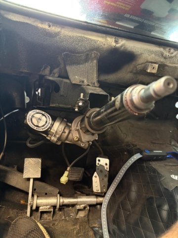 Got the electric power steering installed. You have to the-use original shaft that ties into the steering rack, was a huge PIA to get out of the upper universal joint and into the new one. Got brake pads in, ordered some brake fluid. - Today