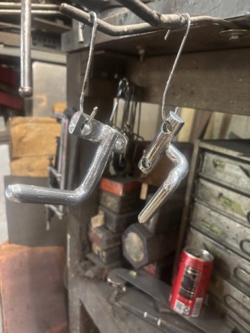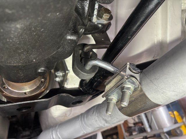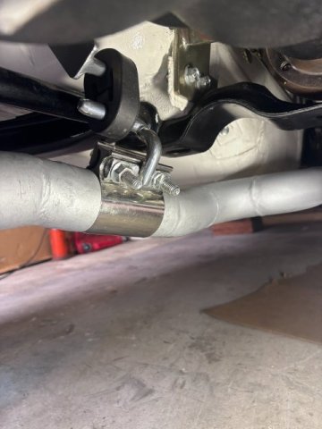 EXHAUST SYSTEM REPAIRS- My 240Z Exhaust Pipes were damaged from scrapping them on Speed Bumps. I found a cracked at one welded joint and a few exhaust leaks. Since repair required their removal, I decided to raise the pipes higher as the same time. I designed this exhaust system so that whole system consists of three major sections. First -Front Section goes from Hooker Exhaust Manifold to the X-Crossover pipe. Second Section runs from X-Pipe to the Rear Right Angle Exhaust Pipes. The Last Section finishes at the Two Turbo Mufflers. So this repair and raising the pipes only required the Intermediate Pipe. Also, since I used Evil Energy V-Band Clamps to connect the pipes, it was a simple job. The Intermediate Pipe Mount consist of 1/2" Steel Rods bent at 90 degrees and bolted to the Differential Housing. To Raise the exhaust pipes, only the Mating 1/2" Mounting 90 degree Rods had to be shorten. Pic of Mounting Rods cut off and rewelded Pic of Mounts Powder Coated and out of Oven Pic of Fully Assembled Exhaust Mount Evil Energy 2 1/4" Lap Joint Clamps( Amazon $20 a pair) Rubber Exhaust Pipe Hangers(Amazon-$6 a pair) and 1/2" Steel Rod-Bent to (90 Degrees-Home Depot) Right Side Pipe Mount Left Side Pipe Mount The Exhaust Pipes were raised about 1 1/2". The job can be accomplished in one days if materials were at hand. - Yesterday