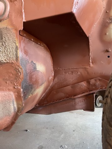 @tube80z - so I have done what you suggested here: I put lips on the battery tray to keep the battery from shifting at the bottom: The battery hold down "plate" has a couple of jog bends to capture the angled bracket that the tank mounts to. I just need to secure this plate I made (what I was referring to with the red outline above) to the main plate to finish this up.
