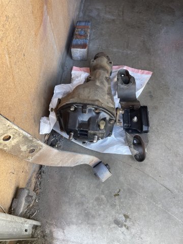02-05-2026. ATLAS Z UPDATE. I got up early and got on the road. I went to Junkyard Jenny's in Ft. Lupton, about 110 miles one way and bought a R200 rear out of a 1978 280Z manual trans that she got in. Less than 100K original miles and she inspected it and said it is VERY nice inside. So, I got the diff, the mustache bar, and the front mounting parts. I ordered a new gasket rom Eric at Z Car Depot, and will paint it up and install later....after the trans is in. then teh driveshaft . It's an open diff with 3:54 gears! Exactly what I wanted. I ASSUMED my late 74 came with an R200, but when I looked under there, a greasy R180 stared back at me! . If you are in the Colorado springs area and want a free R180 let me know. I took my Wilwood clutch master.....I got from Godzilla Raceworks, and masked it off, wiped it down with alcohol and applied several thin coats of silver engine paint. Why? to match the brake master and the color palette in the engine bay. You will also notice I used stainless fittings to get the hookup for the clutch line that I brought in from the cabin to the master nice and clean. On the brake side, I got the Master mounted up to my adaptor plate I finished yesterday and mounted it up requiring me to remove the clutch and brake pedals, move the clevis point on the brakes up 1 inch for a better pedal ratio as I eliminated the brake booster (I did this on my 240Z, so it was quick and easy). Once I got everything bolted up, I was able to adjust my brake pedal height, but ran out of time and daylight for the clutch side. I need to get a replacement locknut for the clutch master rod as I cant find the one it had.....and then use the Speedway threaded clevis and pin, which is larger diameter, and that is why I pulled the pedal and drilled it out. In the pics, you can see I achieved the clean install I wanted. I loosened the clamps holding the master cylinders and moved them, etc. little things to make it look even cleaner. I will plug the remaining "slop" in the holes drilled and paint with a Q tip to finish it off, but I have kept the shaved firewall. Yeah, I am happy. Not too bad for a big bumper 260Z.