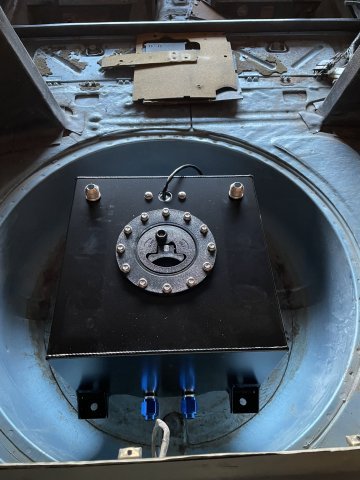 first order of business was to add a fuel cell since i didn't have a fuel tank. Went with a radium 14 gallon unit. Cut the trunk out between the factory frame rails and built a basket. Cleaned it up with some bead rolled panels. plan to add a fill behind the license plate like an old muscle car. -