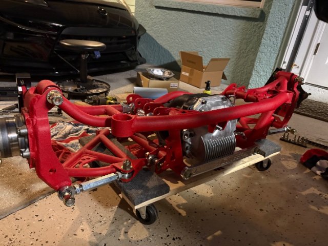Wow, great progress! I love the cantilever design on the rear suspension. A few guys here have previously designed their own custom cantilevers; but AE is the only vendor that I'm aware of that has ever "mass produced" a system like this. Really interested to hear your feedback on how the whole TA package works once installed. Is that the final resting place for the fuel cell? If so, are you going to have a way to isolate it from the rest of the driver's compartment? -