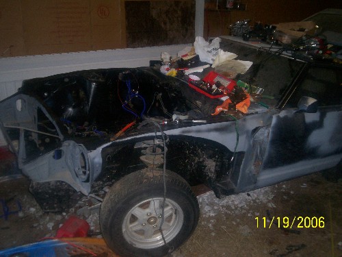 front driver shot of car without fender. Roll on bedliner applied.