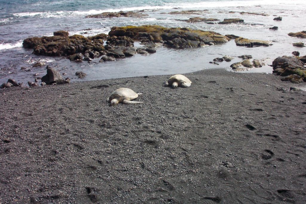 Black sand and Sea Turtles in Hi.
