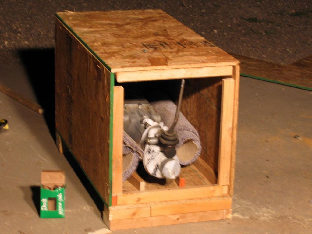 Top it and add some packing. In this case I rolled up some old carpet to keep her from rolling back and forth. Are your eyes blurry yet!