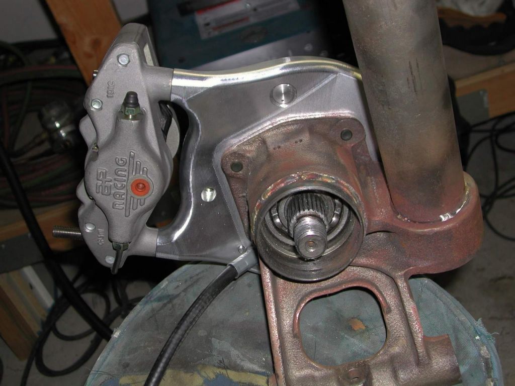 300zx turbo rear hub bearings 5 lug stub axle and componion flange, changed offset +20, custom backing plate using parking brake from a 94 300zx and rear rotor, AP 2 piston caliper CP 5000