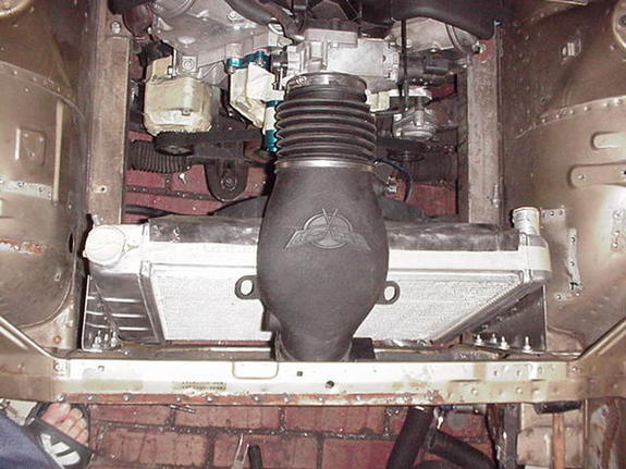 C5 air intake duct runs over the radiator