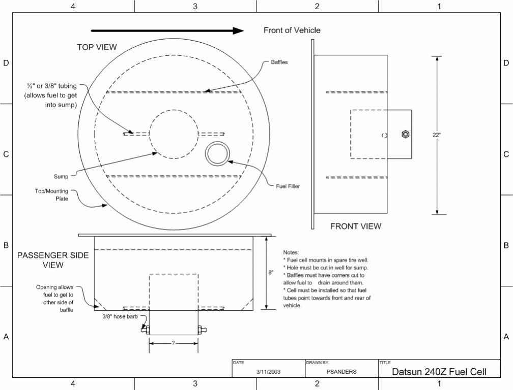 Hear is a drawing for a fuel cell I designed for a 240Z track car I helped build. It works great on high HP fuel injected applications.