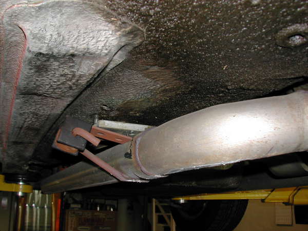 The trans was just bolted to the stock floor pan and all bolts had pulled through the floor. The only thing holding the trans in place was the exhaust system.