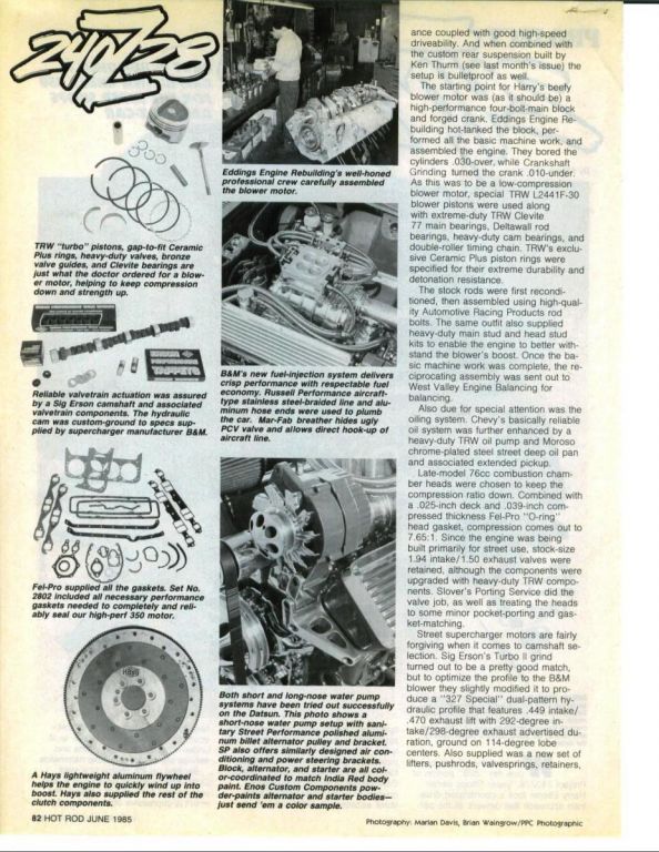 Project 240 Z28 - Hot Rod Magazine article - June and July, 1985 - p. 5 of