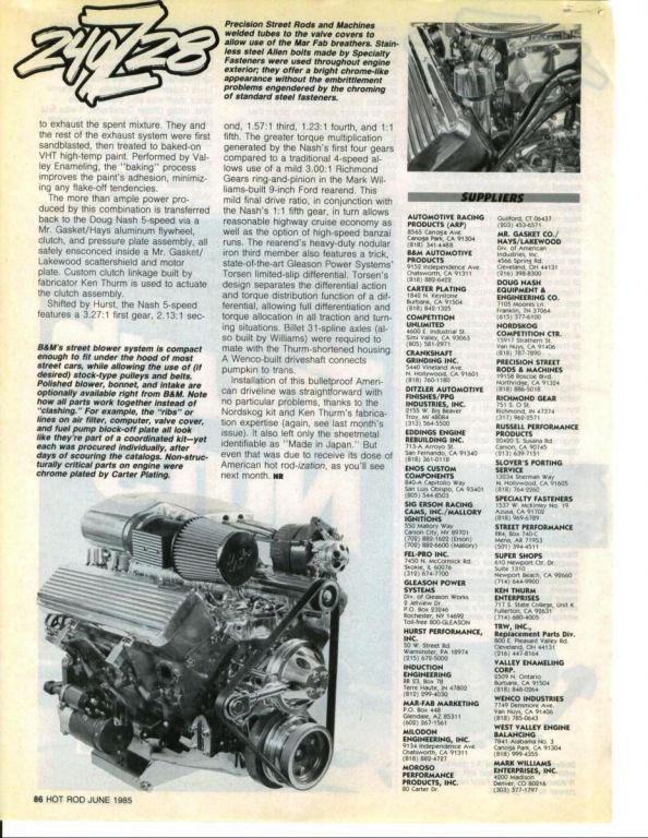 Project 240 Z28 - Hot Rod Magazine article - June and July, 1985 - p. 7 of