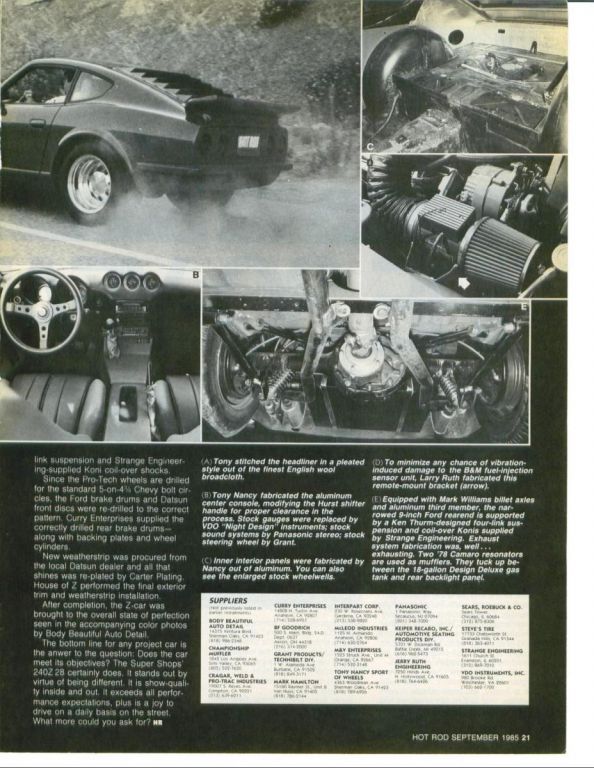 Project 240 Z28 - Hot Rod Magazine article - June and July, 1985 - p. 15 of
