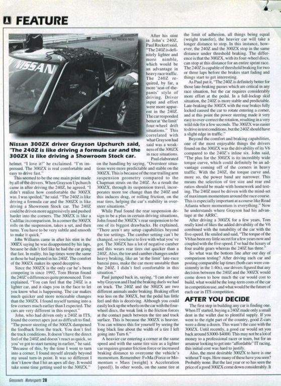 Comparison article - 240Z and 300ZX race cars - Grassroots Motorsports mag