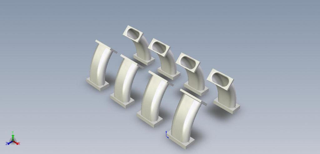 Here is an idea for the intake manifold for my VH45. So far this is just the runners runing from a plenum. I have made a few plenum designs but none that are satisfactory as of yet.