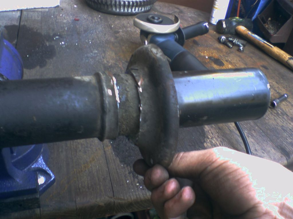 Using a thin cutting disc on an angle grinder, cut the stock lower spring perch off. Do not cut into the strut body, I cut 6mm (1/4") above the weld to get enough distance.
