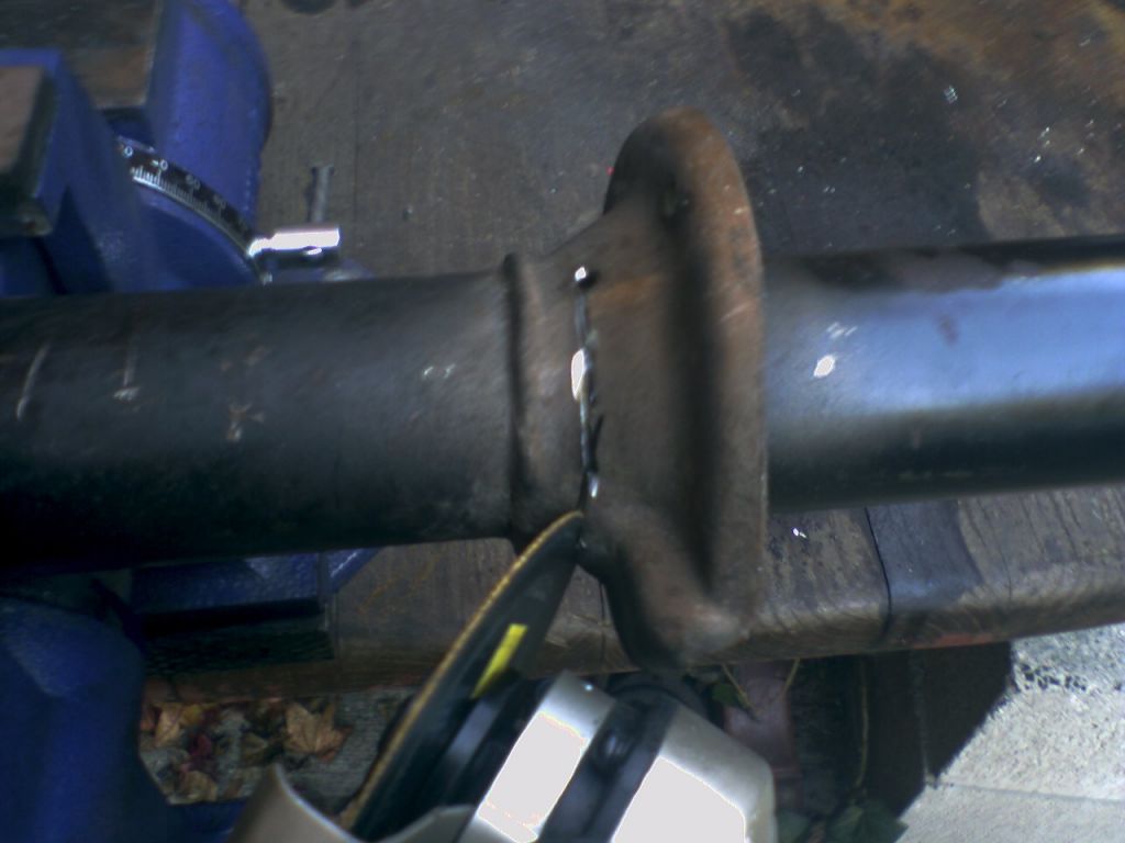 Using a thin cutting disc on an angle grinder, cut the stock lower spring perch off. Do not cut into the strut body, I cut 6mm (1/4") above the weld to get enough distance.
