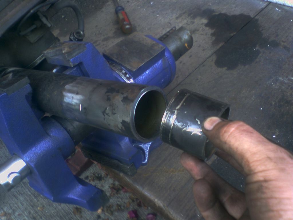 Cut the strut tube at the mark scribed in step 7 using the pipe cutter.