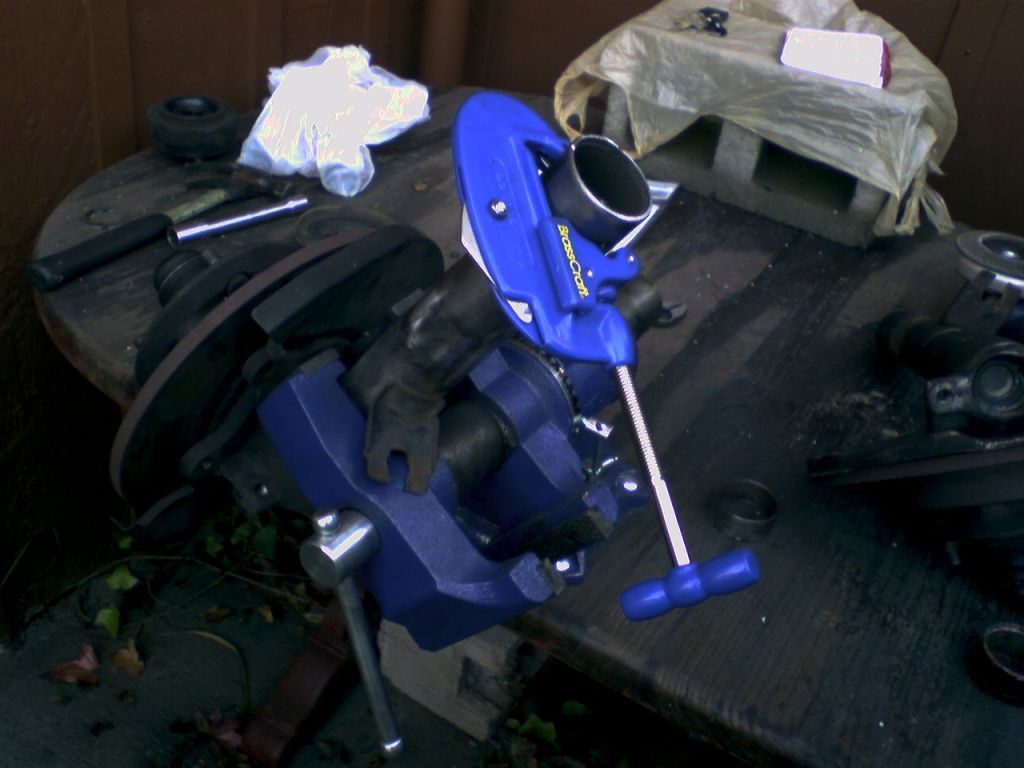 Cut the strut tube at the mark scribed in step 7 using the pipe cutter.