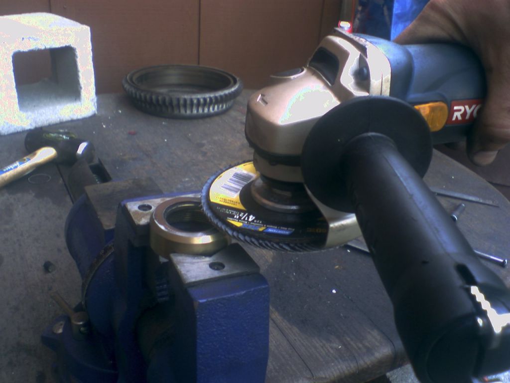 Using the grinding disc, carefully grind down the remaining small diameter section until the carrier ends at the end of the conical section.