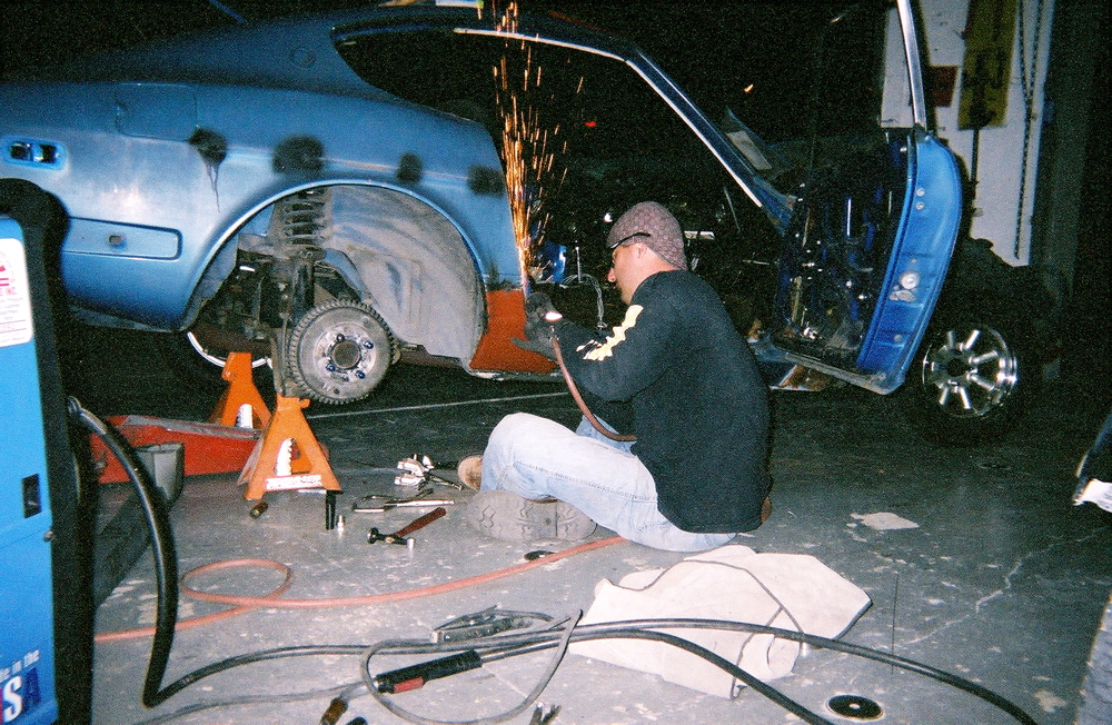 Dan removed dealer installed rubber anti-door ding strip,all the emblems, welded all the holes. here he's replacing rusty dog leg area.
