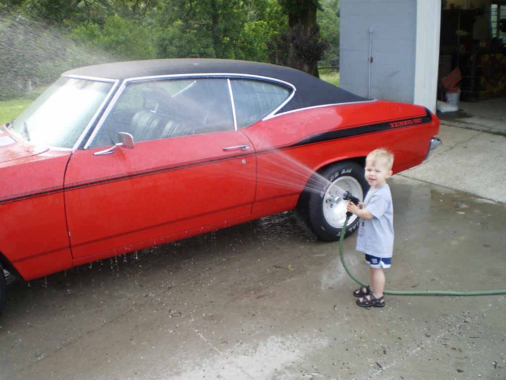 This is my Nephew , washing my car
