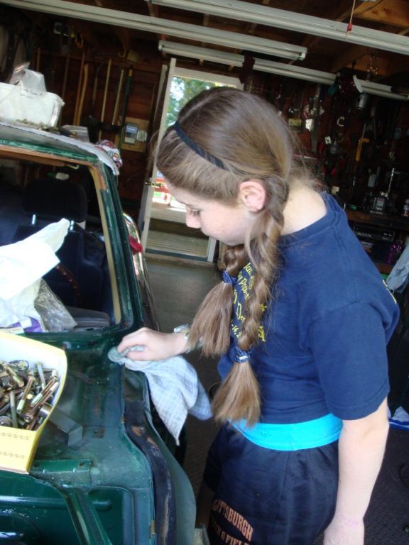 Emma detailing the door jambs prior to fender install