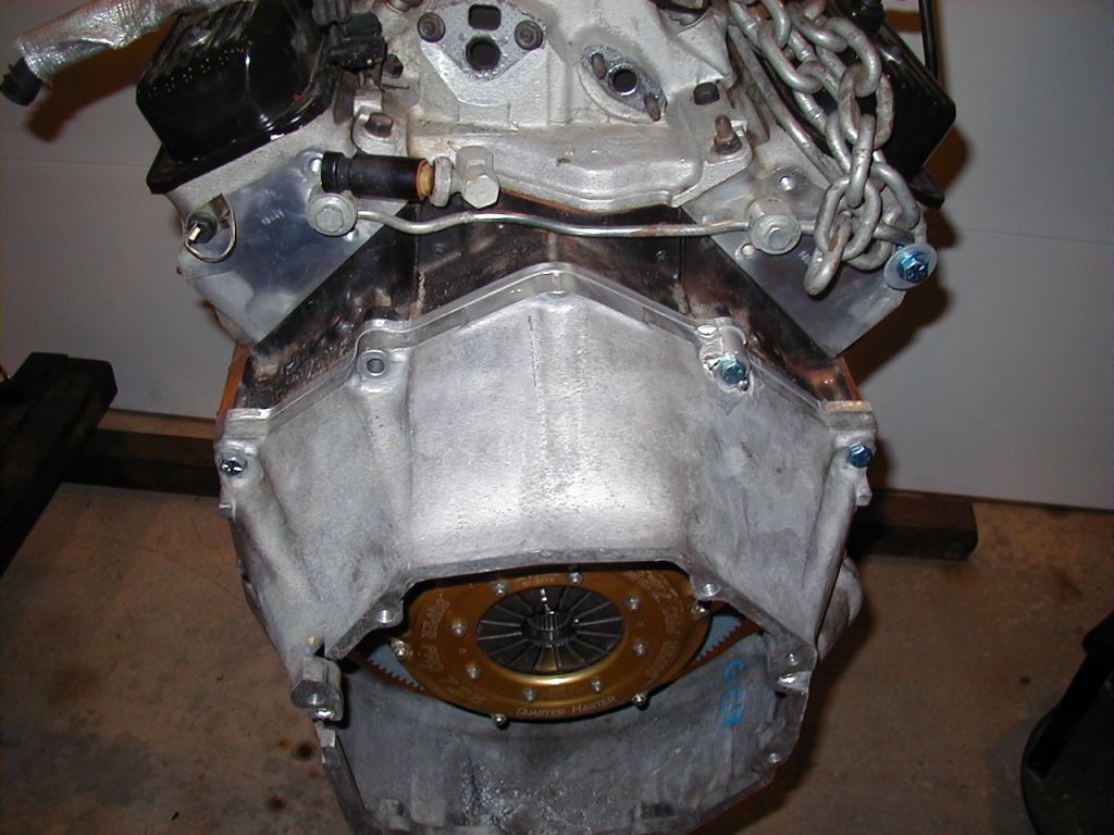 LS1 Bellhousing modified to the traditional late Chevy transmission pattern.