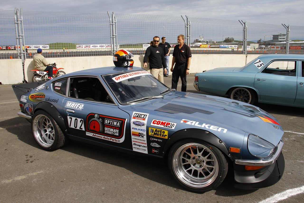 18 inch wheels all the way around. 10.5 front and 11.5 rear with 315 Falken Azenis tires on all 4 corners