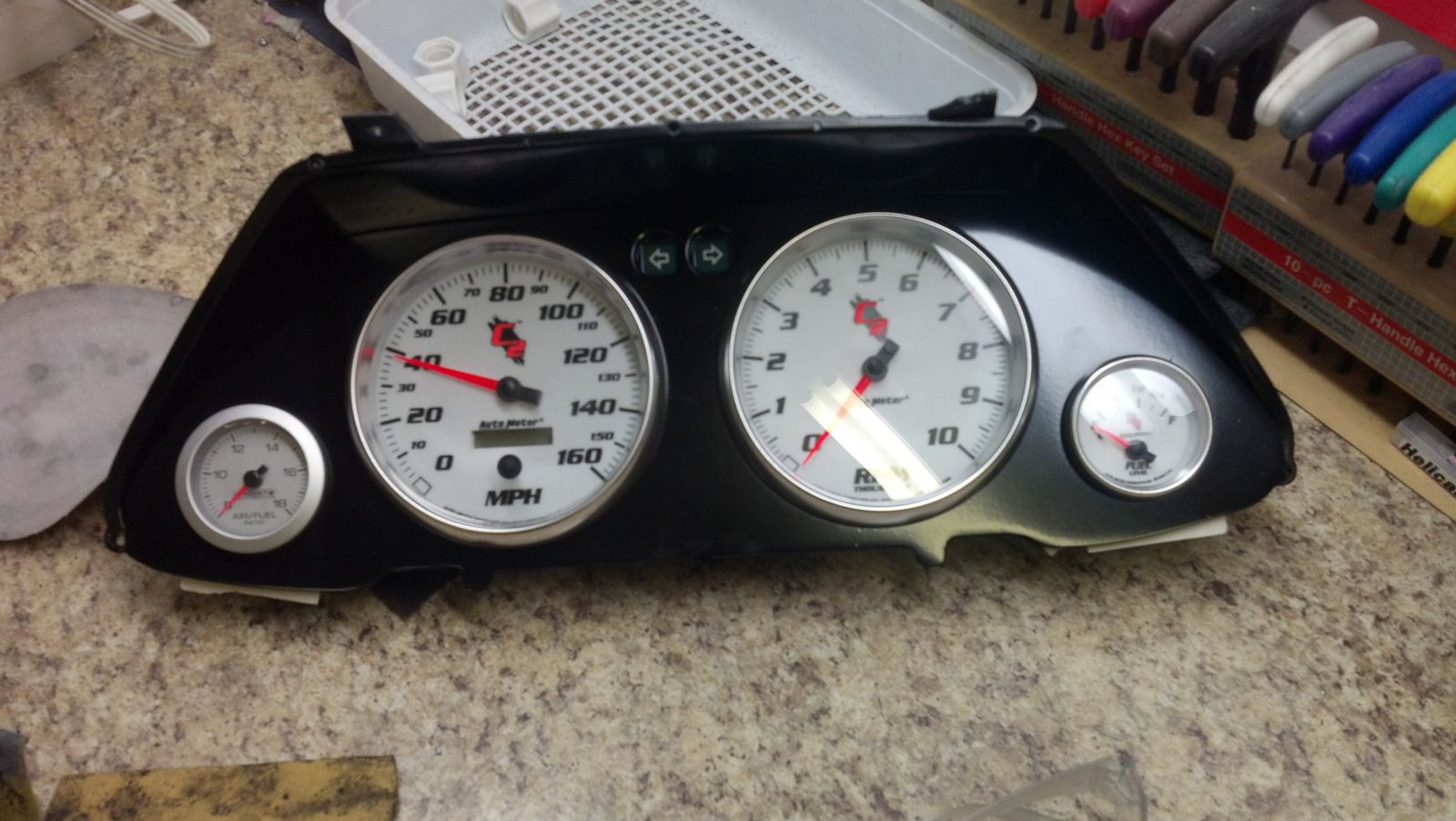 Made gauge cluster auto meter gauges, indicate air/fuel.i used a Ford gas gauge but I couldn't get the amount of resistors right to work correctly dispute what I read on a forum before