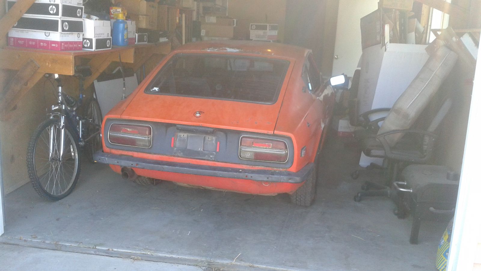 My 240z in her new home. It's a little cramped but I'll be taking care of that soon.