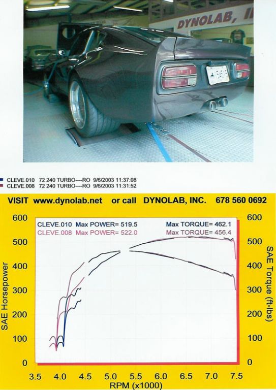 This was a turbo-tom setup boosting about 25-28 psi on race gas and a 125 shot of nitrous. Was high 300's without nitrous. Notice the flat torque curve. Yes, it was a blast to drive.
