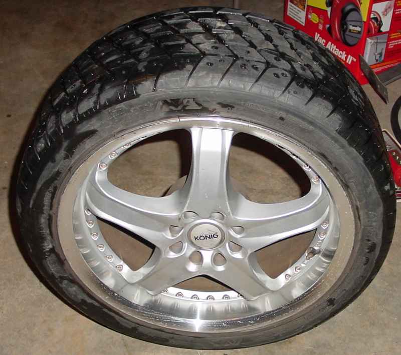 Joy, Konig Monsoons. Had to get hubcentric adaptors for the wheels.