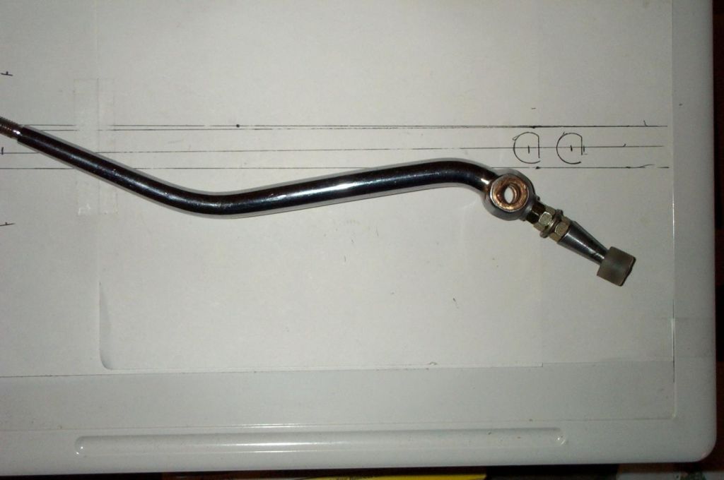 Using nuts and washers to help strengthen the stud and be able to adjust the ball so the lever won't hit the edges of the shift rod cut out.