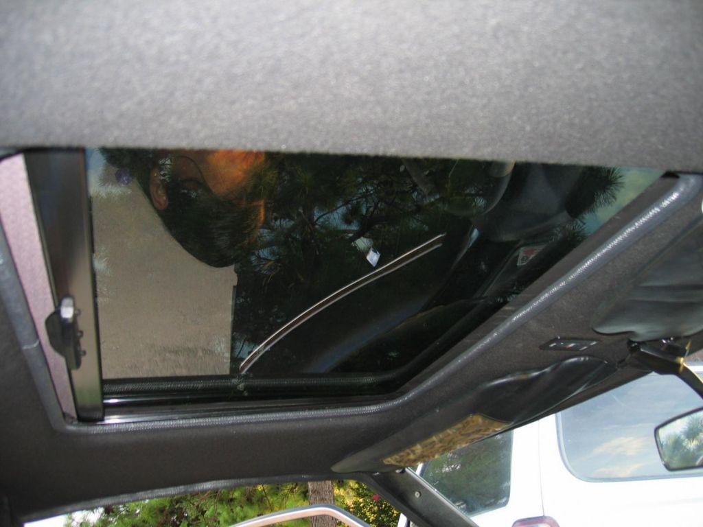 Here you can see through the glass outside and notice that the roll shade is opened all the way. You can see the slide handle at the backside which rolls up into the sunroof window unit itself.