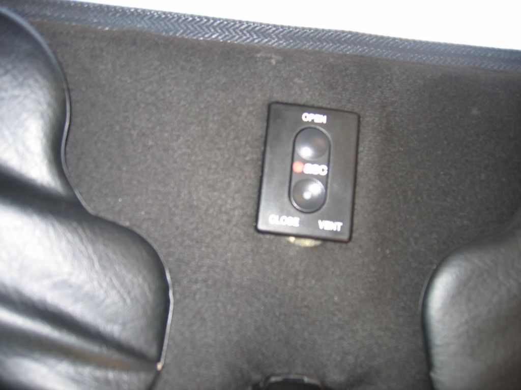 This is the simple switch that is mounted right in front of the sunroof in the headliner. This works fine in the position but would have been better if we mounted it in the center console. Also we should have made a new headliner using black leather than this velvet type of cloth, but we will probably do that once we do the roll cage.