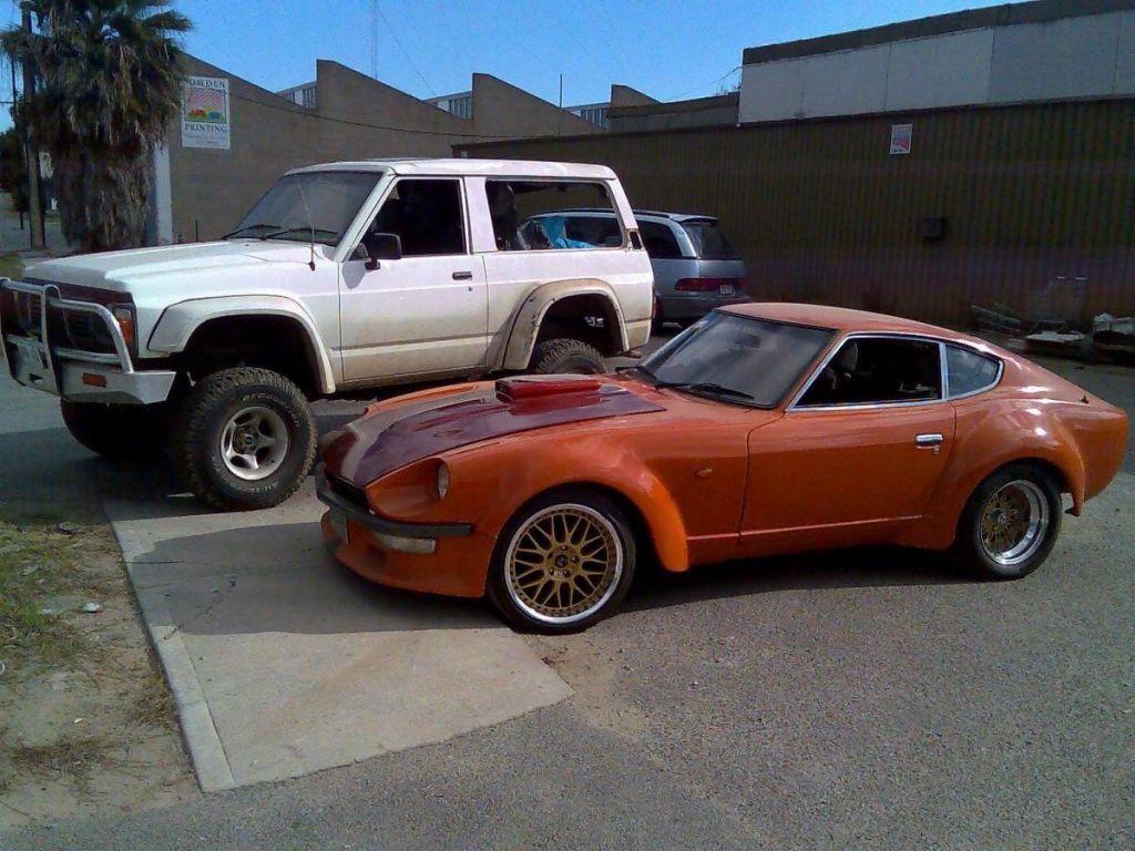 70 model low number zed with volkswagon flares, and the beginning of 5 stud hub conversion. Background, '88 Nissan s.w.b. Patrol I kinda went silly on.