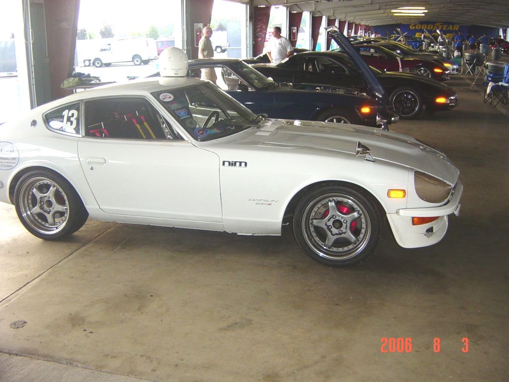 shows my z in good company within the garage at watkins glen. note the expensive stuff in the background i was able to beat up on!