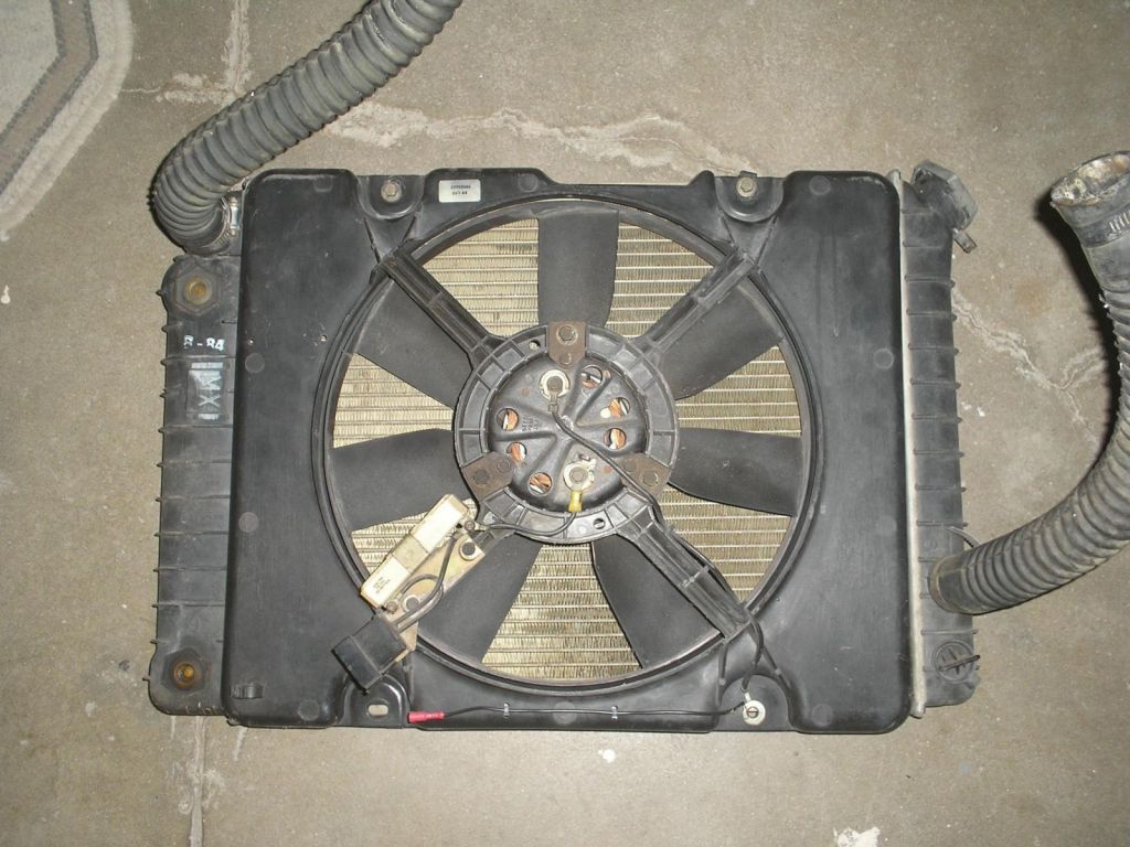 Fiero radiator with fan and shroud attached using factory atachment bolts.